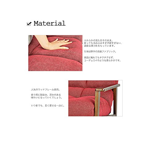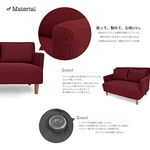 ソファー ラブソファー 北欧風デザイン 木枠ソファー 「 バレンティナ 」 二人掛け (クッション付き 布地タイプ) レッド色