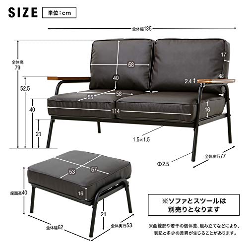 【ベンチソファの仕様用途】 〈サイズ〉幅135 × 奥行77 × 高さ79cm〈座面高40cm〉 〈素材〉(本体枠)スチール(クッション材)シリコンフィル,ウレタンフォーム,ポケットコイル(張り材)PVC〈合成皮革〉,またはファブリック〈ポリエステル〉 〈重量〉約23kg 〈耐荷重〉約180kg 〈梱包サイズ〉117 × 70 × 41cm〈約26kg〉