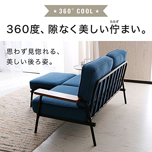 LOWYA (ロウヤ) ソファ 2.5人掛け 2人掛け ベンチソファ スチールフレーム 肘置き ポケットコイル ファブリック ネイビー おしゃれ 新生活