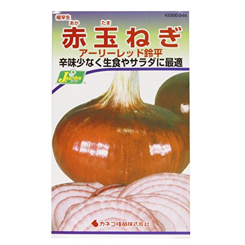 サラダなどでよく見かける赤い玉ねぎ(レッドオニオン)は、タキイ種苗株式会社からでている6月上旬から収穫できる中晩生の玉ねぎです。8月の末までの保存期間になります。
