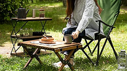 ひじ掛けは天然木で作られていて温かみがあり、生地はしっかりとしているため耐荷重は80kgまでです。専用のバッグがついているので、そちらに収納して持ち運んでください。