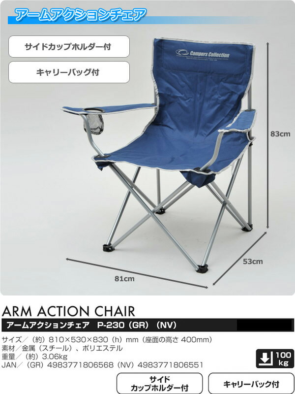 キャンパーズコレクション アームアクションチェア ネイビー P-230(NV)