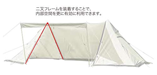 二又フレームはツインピルツフォークの必須アイテムといっても過言ではありません。ポールと差し替えて使うことで、シェルター内のアレンジがしやすくなります。2本のポールで設営するとデッドスペースが生まれやすくなるのですが、二又フレームで設営するとフロアを有効に活用することができます。二又フレームを自作する人もいるようです。