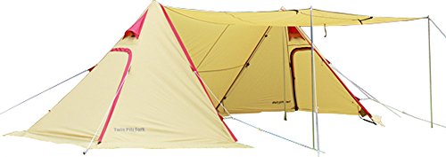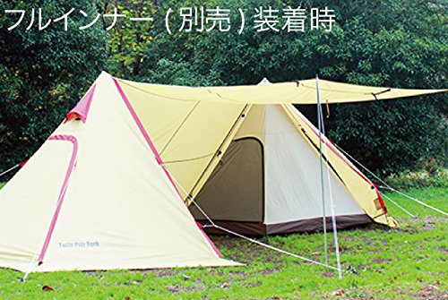 ツインピルツフォークの別バージョンとして、ポリエステルとコットンを混紡したツインピルツフォークT/Cがあります。T/Cはコットンならではの肌触りや通気性・吸湿性に優れていますので、ナチュラルな雰囲気を楽しみながら結露を抑えてくれる素材です。サイズが同じですので、オプションのインナーテントや二又フレームも使えます。