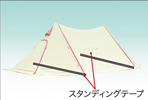ツインピルツフォークの設営手順は①ツインピルツフォークを地面に広げ、8箇所を仮ペグダウン②ポールを2本立てる③必要に応じてペグダウン④張り綱を引く…で完了です。スタンディングテープが長方形の短辺をつないでいますので簡単に設営できるでしょう。ユーザーレビューを紹介します。