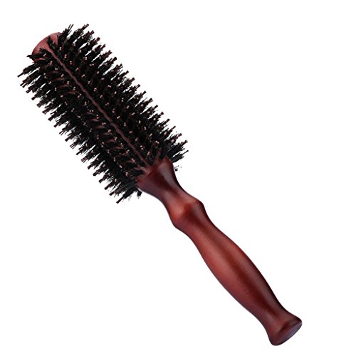 Ovonni ヘアブラシ 豚毛 ロールブラシ 木製 ローリングブラシ ヘアケア 静電気防止 耐熱仕様 美髪専用器具 ストレート用 携帯 (直紋)