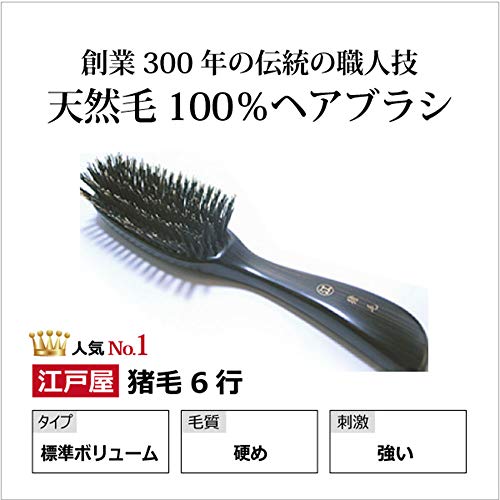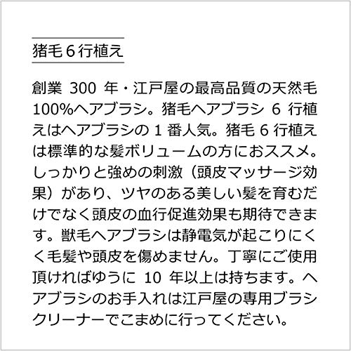 猪毛ヘアブラシ6行植え 創業300年江戸屋の天然毛100%猪毛ヘアブラシ 標準髪ボリューム向け