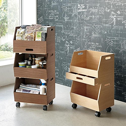 前に取っ手がついたキャスター付きのラックです。押入れの下側に配置すると、中に入っているものが見えなくなります。何台か並べると、高級なブティックのようなイメージになっておしゃれですね。 押入れの下側は、上に比べるとレイアウトが難しいので、ついつい適当になりがちです。キャスターが付いたラックを使えばそれも解決、おしゃれなインテリアを作ることができますね。