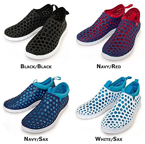 メンズレディース問わない、ユニセックスなデザインとサイズ展開で履くことができる、マリンシューズです。軽くて通気性もありストレッチ素材ですのでそのまま履いても足にぴったりフィットします。水陸両用タイプですので海から上がった後そのまま車の運転も可能。脱ぎ履きしやすいスリッポンタイプ。カラーリングもおしゃれな2色展開で、価格もお求めやすい4,000円程度です。