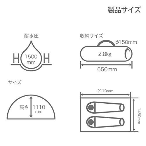 ・外寸:(約)幅2110 × 奥行き1480 × 高さ1110mm ・収容可能人数:2名(大人2名)