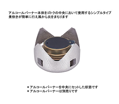 トランギアB25用ゴトク TR-281は、シンプルな構造で、しかもわずか50gという軽量のアルミ製の製品です。アルコールストーブ用のごとくとしてはスタンダードなデザインですね。サイズは、直径9.7×H6.3cmで、普通のサイズのアルコールストーブならば対応が可能です。使いやすさと軽さが、口コミでも満足感が高い理由のようです。お値段は、およそ1000円です。