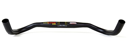 こちらは安価に購入できるエアロタイプのブルホーンバーです。手前の部分が偏平になっていて、機能もルックスもレーシーです。中央部からのドロップはなく、またどこを持っても持ちやすい設計であるため、競技用ながら街乗りでも使いやすいブルホーンバーです。
