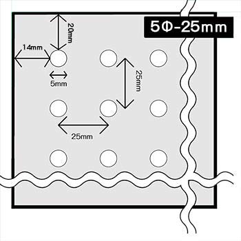 サイズ|幅300mm × 高さ600mm × 厚さ5.5mm 穴径|5mm 穴ピッチ|25mm 塗装|表側〈ウレタン塗装〉,裏側〈無塗装〉