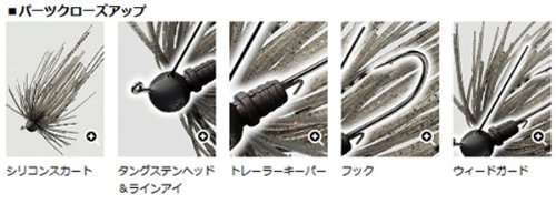 『C-4ジグ(シーフォージグ)』はEVERGREEN(エバーグリーン)から発売されている【スモラバ】で、アイが飛び出ているような形になっているのが印象的な【スモラバ】です。また、ウエイトがわかりやすいように、ヘッド部分にウエイトの表示があるので、一目で分かりやすいく作られていることもありがたいですね。ガードは1.3g~2.2gは1本で、2.7g~3.8gは3本となっています。
