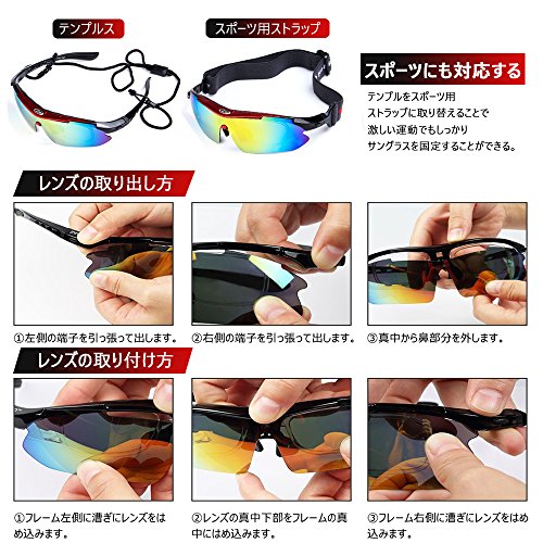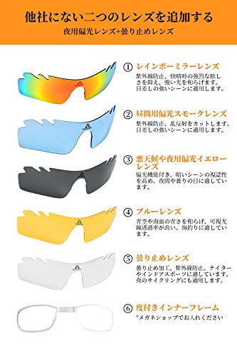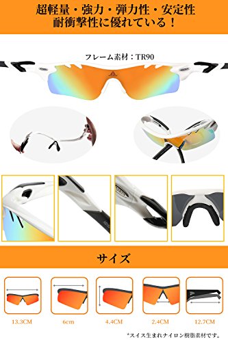 Ewin スポーツサングラス 偏光レンズ 度付きレンズ対応 UVカット交換レンズ5枚付き UV400