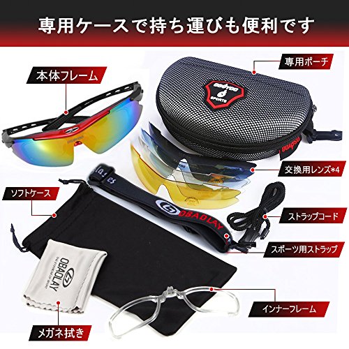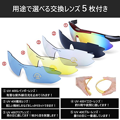 OSOYOO(オソヨー)スポーツサングラス 交換レンズ5枚付き 偏光ガラス1枚 着脱可能インナーフレーム付属