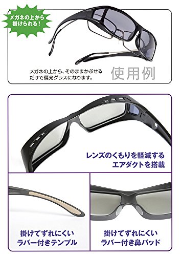 鼻当て部分とテンプル部分にはラバーが装着されていますので、フィット性に優れていて快適な装着感を持続してくれます。お使いのメガネの上からかけることも可能で、そのまま被せるだけで偏光グラスになって使用することが可能です。またロードバイク走行時にメガネが曇らないようにエアダクトも搭載されていますのでストレスなく快適に走行を楽しむことが出来ます。