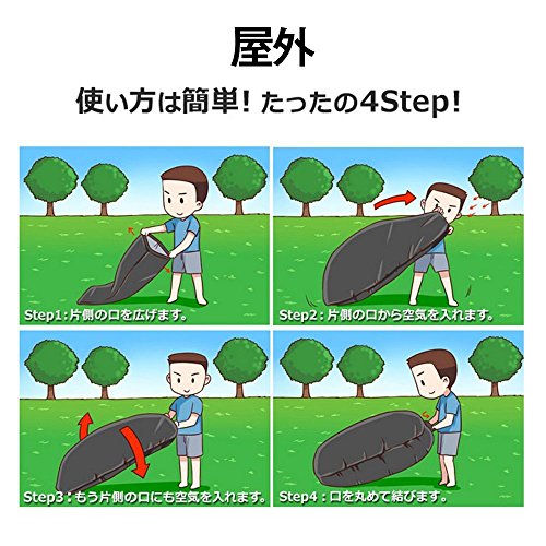 それに対して星4つ以上のレビューも45%ありました。「使い方ですが、やはりCMのようにすぐに膨らむことは難しいですが、何度かバサバサするとちゃんと膨らみます!」「1人でベッド、2人でソファと大活躍しました。室内や無風空間では膨らみづらいかもしれませんが海辺の風があればホントに3秒でベッドの完成です。」「慣れるまで膨らますのは少し大変ですが、座り心地は結構いいです。子供も大喜びで、座ったり、埋もれたりして遊んでいます。」