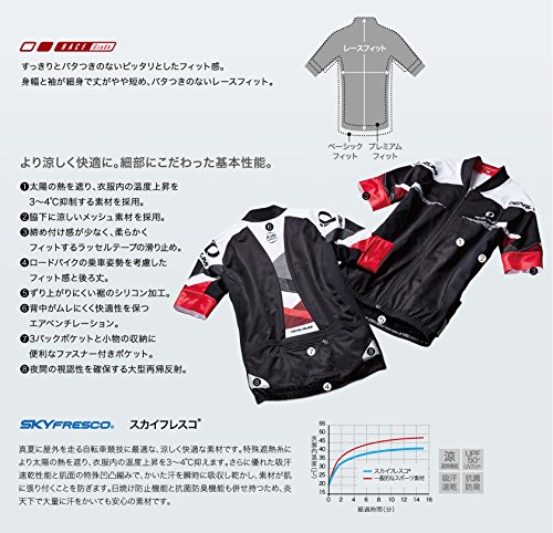 サイクリンウェアではトップ3に入るほど人気の高いブランド「パールイズミ」の男性用半袖サイクルジャージです。こちらで紹介するのは細身のレースフィット。UVカット(UPF50+)、遮熱素材のサイクリングジャージです。メッシュ素材で、背中のポケットはファスナー付きポケットが付いた3パックポット。サイズ展開はS〜XLとなっています。
