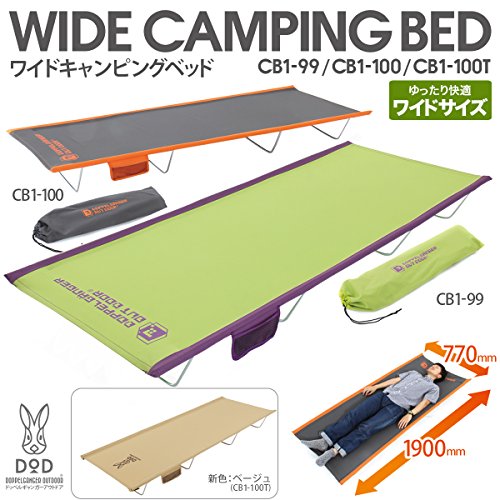 DOD ワイドキャンピングベッド | 全3色 CB1-99 CB1-100 CB1-100T | コット 全長1900×幅770×高190mm | ドッペルギャンガー