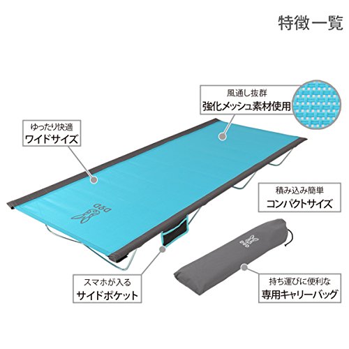 DOD ウルトラクールキャンピングベッド CB1-139 | 全2色 | コット 全長1900×幅770×高190mm | 蒸れにくいメッシュ&ワイドサイズ