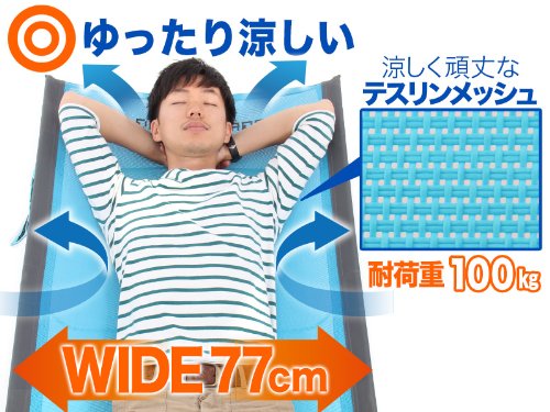 ウルトラクールキャンピングベッド CB1-139はベッド本体には通気性と強度に優れるウルトラクールメッシュを採用しています。肌触りも快適で、評判も良く暑い夏でも快適で涼感のある睡眠が可能です。睡眠時の窮屈さを解消するため、ベッド本体の横幅をワイドな77㎝に設計しています。大人1人が十分にゆったり快適に眠れるサイズになっています。