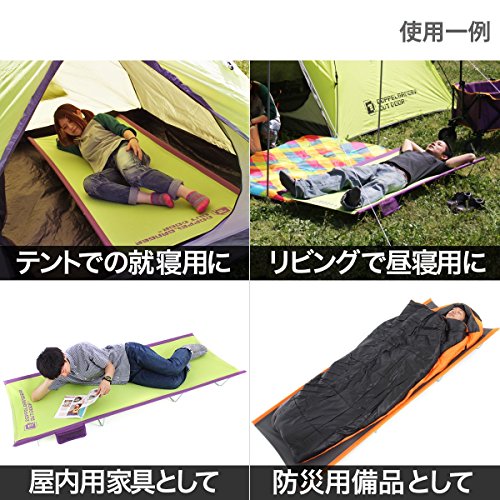 ドッペルギャンガーに耐久性、軽量性、機能性、コンパクト性、全ての要求に対応するキャンピングマットがあります。評判が良いこの一枚をコットの上に敷くことによって寝心地度をもっとアップされることが出来ます。エアバルブを緩めてコットの上に広げるだけで、自ら空気を吸って膨張するインフレータブルキャンピングマットになっています。口コミでも評判がいいです。
