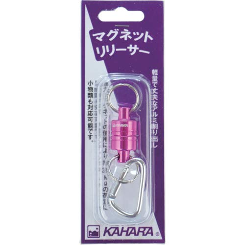 KAHARA(カハラ)から発売されている、【マグネットリリーサー】は、通常のカラビナやキーホルダーなどと違って、磁石でくっついているので、すぐに使いたいときとかに強めに引っ張ればすぐに使用できる便利なグッズです。また、持ち運びが面倒なときなどにもとったり付けたりするのが楽になります。強めの磁力なので、おかっぱりの時にランディングネットとかも持ち運び出来ます。