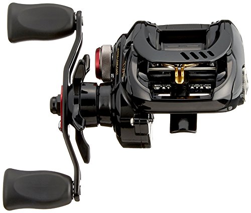 ギア比7.3のハイギアモデルです。ラインキャパシティは、ナイロン14lb105mとなっています。近年のベイトリールにも多く見られるギア比なので、いつもの道具と同じ感覚で楽しみたい方におすすめ。カラーリングはブラックに赤の差し色が採用されています。