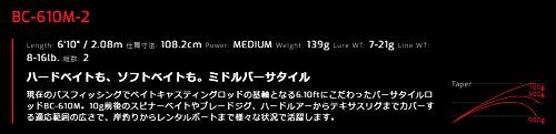 BPM2ピースの中でもっともライトなモデルです。ノーシンカー、1g未満のジグヘッドや、虫系の釣りに適したモデルで、ハイプレッシャーエリアの攻略に最適。フィネスリグをナチュラルに操作するスタイルの釣りに適しています。やや専門性の高いロッドなので、釣り場の状況を掴めている経験者の方におすすめです。