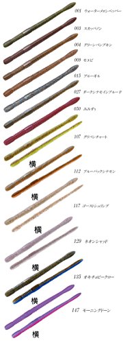 ミミズを模したカラーです。こちらも比較的ナチュラルなカラーで、場所を問わず使えます。ちょっと触りにくいという方もいるかもしれませんが、土が近い場所、野池では効果抜群。魚よりもミミズがベイトになっていそうなケースで試してみたいカラーです。