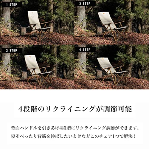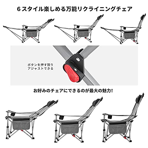 シートのヘッドとフット部分はクッション入りシートになった、くつろげるアウトドアチェアです。リクライニングは5段階に調整が可能。素材にはアルミを使用し重量はおよそ4.5kgと持ち運びも楽に行えます。