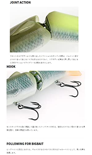 小さな水流があればスローに巻いてもしっかり泳ぎ、早巻き、流れのある場所ではハイピッチなアクションで見切られにくいアクションが楽しめます。ストップ、立ち上がりといった動作の動き出しも、ハイレスポンス化でより繊細に。着水位置、コースを絞ってワンキャストに賭ける、上級者の方にも是非手に取ってみて欲しいビッグベイトです。
