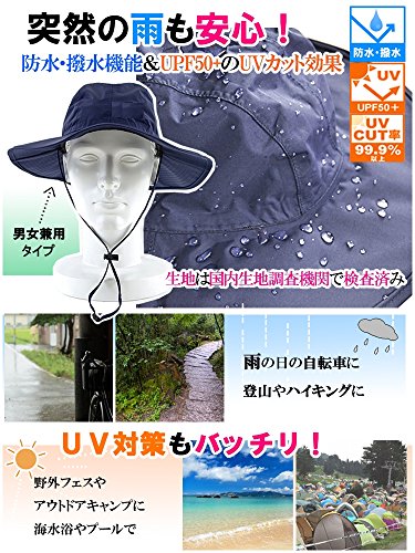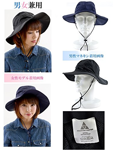 マウンテンハンター 防水 撥水 サファリハット upf50 uv カット ひも付き つば広 レインハット 帽子 折りたたみ ハット ユニセックス (ブラック)