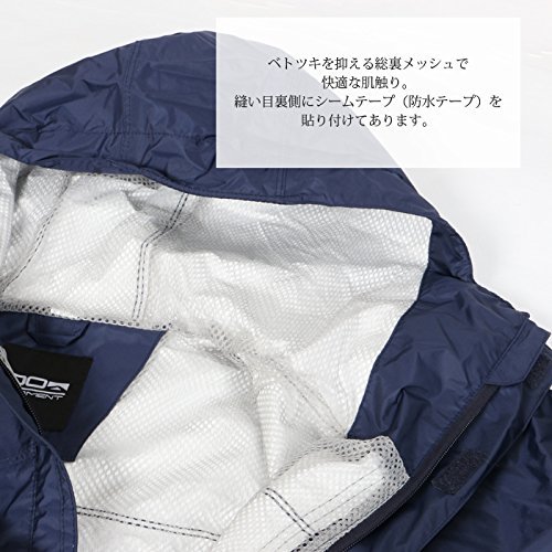 透湿防水レインウェア 東レ ブリザテック 上下レインスーツ KJレインパーカー&レインパンツ (ネイビー×ブラック, Lサイズ)
