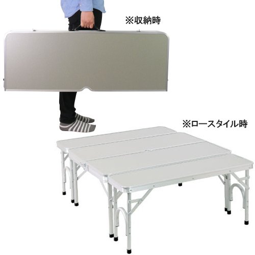 出典: https://www.amazon.co.jp/%E3%82%A2%E3%82%A6%E3%83%88%E3%83%89%E3%82%A2-%E6%8A%98%E3%82%8A%E3%81%9F%E3%81%9F%E3%81%BF%E3%83%86%E3%83%BC%E3%83%96%E3%83%AB-90%C3%9740cm-%E3%83%AD%E3%83%BC%E3%83%86%E3%83%BC%E3%83%96%E3%83%AB-QC-3FT90/dp/B010075CGY/ref=sr_1_9?ie=UTF8&qid=1525047472&sr=8-9&keywords=%E3%83%94%E3%82%AF%E3%83%8B%E3%83%83%E3%82%AF%E3%83%86%E3%83%BC%E3%83%96%E3%83%AB%E3%80%80%E3%83%AD%E3%83%BC%E3%83%86%E3%83%BC%E3%83%96%E3%83%AB&th=1キャンツー用に購入。 他にないサイズで、使い勝手も良いです。 收納サイズは2つ折れ、使用サイズは1.5倍、お得だと思いました。 高さが低いので、椅子の高さを合わせる必要有りです。 むき出しで積載していますが、雨も平気です。