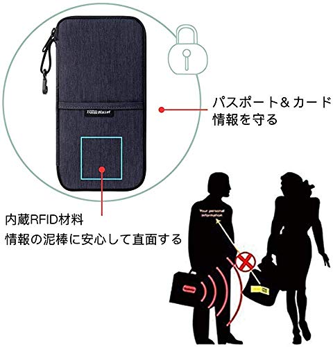 RFIDブロッキング素材を採用しているスキミング防止機能付きのパスポートケースで、クレジットカードやパスポートの情報を防いでくれます。