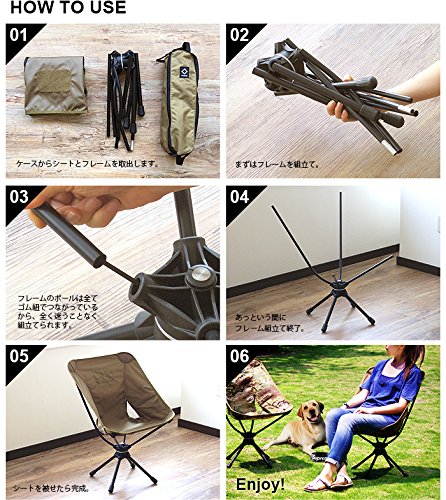 回転するので手の届く範囲に荷物を置いておけば 座ったまま調理などが出来るので、大変使い勝手は良いです。 自分は体重が125kgあるため、1年程で脚が一本折れてしまいましたが、近くのヘリノックスを扱っているショップで修理しました 修理代金は700円で一週間程かかりました。 安物を買って壊れて捨ててしまうより、 値段は高いけど安く修理出来て、永く使える こちらを買って良かったと思います。
