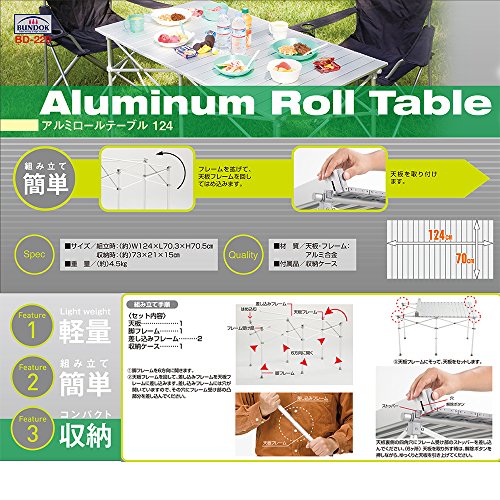 BUNDOK(バンドック) アルミ ロール テーブル 124 BD-220 【3~6人用】 コンパクト収納 アウトドア