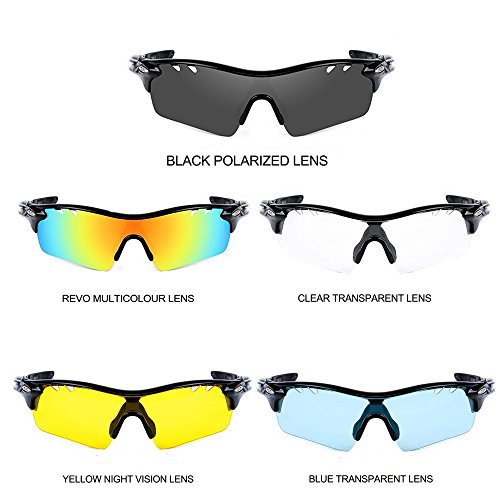 交換可能レンズ付きのランニング用サングラスを探している人には、Rilobi 偏光スポーツサングラスがおすすめ。5枚の交換可能レンズが付属しています。そのため、お好みに合わせて選択してみてください。