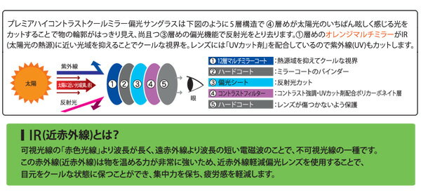 prince プレミアハイコントラストクールミラーのおすすめポイントは、5層構造になったレンズです。太陽光と反射光をカットし、表面にはレンズが傷つかないようにハードコートが施されています。