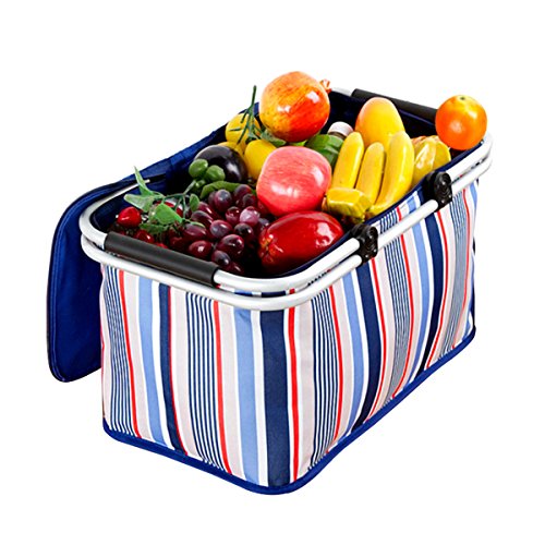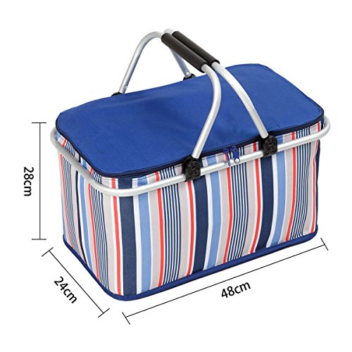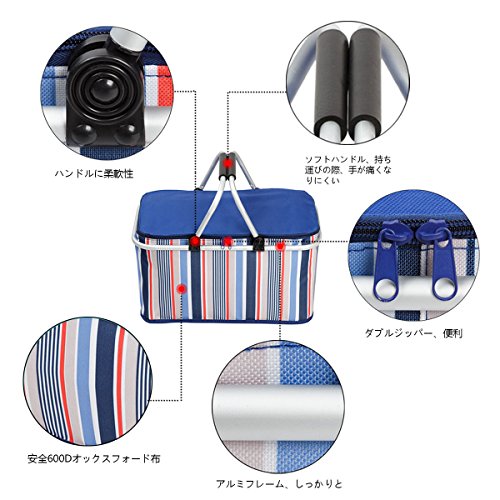 折りたたみピクニックかご、NATUCE 32L大容量絶縁断熱ランチかご、アルミニウム合金放熱ハンドルキャンプショッピング袋クーラーバスケット、適用徒歩釣り観光焼き-ブルー