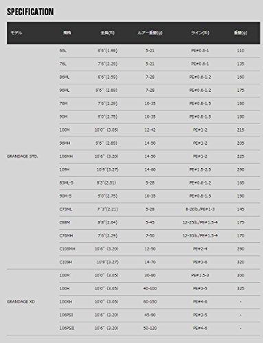 磯向けモデルのXDカテゴリーからは、中型青物をメインターゲットに設定した100Hをご紹介。ソフトティップのプラッギングスペシャルもラインナップされていますが、こちらはプラグ、メタルジグ両方を楽しめるようなバーサタイルなセッティング。グランデージXDで、地磯デビューもバッチリです!