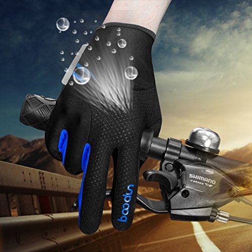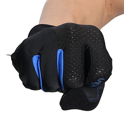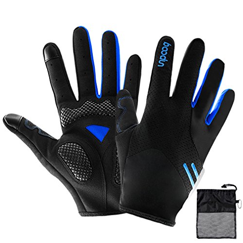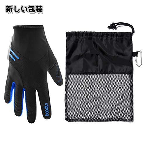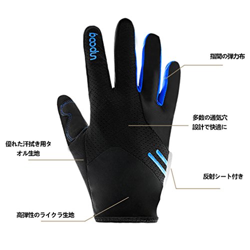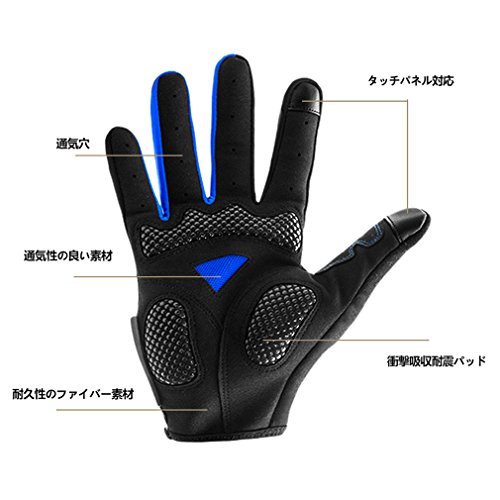 サイクリング グローブ 自転車グローブ サイクルグローブ スマホ対応 自転車 バイク 耐磨耗性 換気性 衝撃吸収パット 手袋 男女兼用 収納袋、カラビナ付き (L, ブルー)