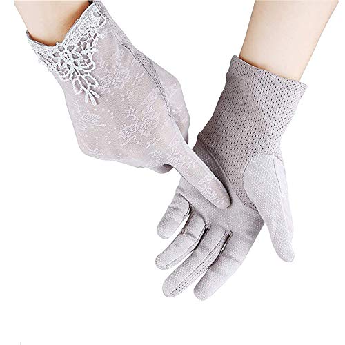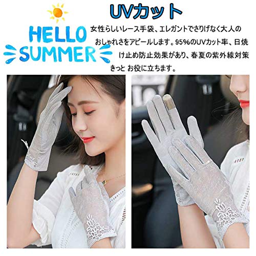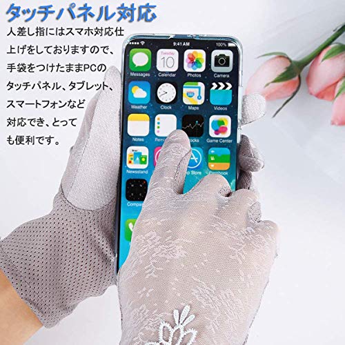 レディース UVカット 手袋 スマホ対応 メッシュ 日焼け止め手袋 かわいい 冷感 グローブ ショート 夏用 薄型 手袋 紫外線カット 運転 自転車 滑り止め付き グレーグレー