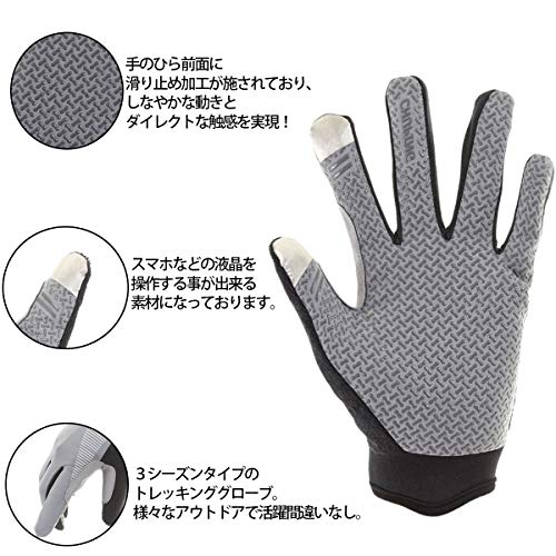 monoii(モノイー) 収縮素材でフィットする トレッキンググローブ 通気性 春夏用 グレー Lサイズ/スマホ対応 クライミング 手袋/MNI-69