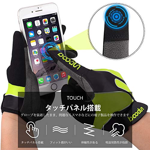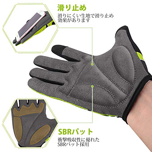 HIKING 自転車グローブ サイクリング グローブ 防風 防寒 滑り止め付き 耐磨耗性 換気性 衝撃吸収パット スマホ対応 手袋 防水 手袋 タッチパネル手袋 滑り止め手袋 (グリーン, L)
