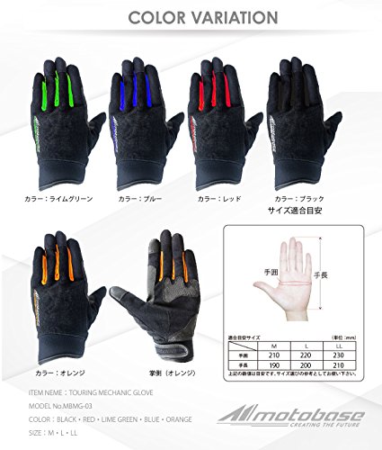 モトベース(MOTO BASE)春夏モデル スマホ対応 ツーリングメカニックグローブ MBMG-03【ブルー/M】