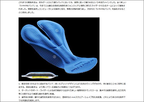 男性用のビブショーツのおすすめの1つ目は、SHIMANO CYCLE WEAR S-PHYREです。エアロ素材を使用しているので、伸縮性が割とあります。特に太もも周りの締め付ける感じが少なく、負担をあまりかけずに済みます。ロードバイクでたくさん漕いでいると太ももに疲れなどが来やすくなるけれど、SHIMANO CYCLE WEAR S-PHYREは軽減させてくれます。長距離を走る時にはかなり合っていて、実際にどれだけ走ってもいつも以上に疲れないです。