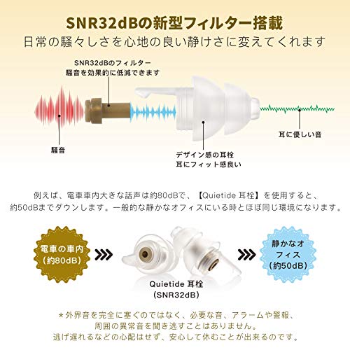 最後にご紹介するのは、ループ クワイエットです。S、M、Lの3サイズのイヤーチップとケースが付いています。NRR27となっており、睡眠時だけでなく、日中の仕事、勉強時に生活音の遮音をしてくれます。